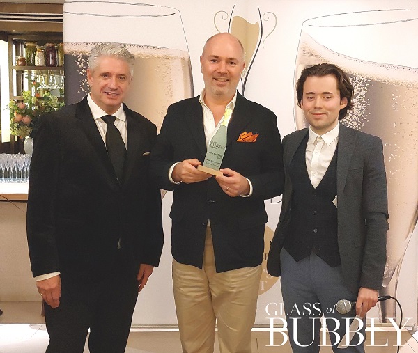 Arnaud Fabre (middle) – The President of Champagne Alexandre Bonnet – Collecting The ‘Pastries Delight’ Trophy at the Glass of Bubbly Awards 2024 for their Les Contrées 7 Cépages