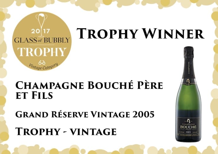 Congratulations to Champagne Bouche Pere et Fils with their Grand Réserve Vintage 2005 which received a Trophy at The World’s Finest Glass of Bubbly awards 2017.