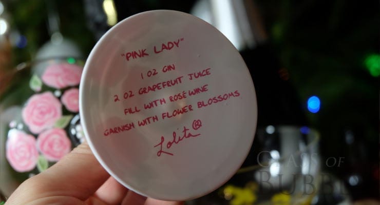 We got to use four of the many glasses available, Bee’s Knees, Eternité, Pink Lady and Lavender Lemonade, each one has a suggested Cocktail on the bottom of the glass for you to try.