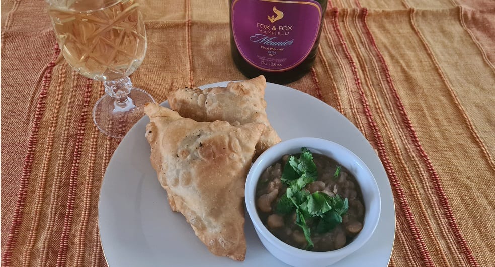 Samosas with chana masala (chick peas) & Fox and Fox Meunier 2014